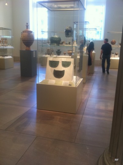 First, the Met is not a small museum. Second, each exhibition appears in its own space, seemingly detached from the several exhibitions next door. Third, this post is about things in the Met which may or may not intentionally have been setup to resemble a face.