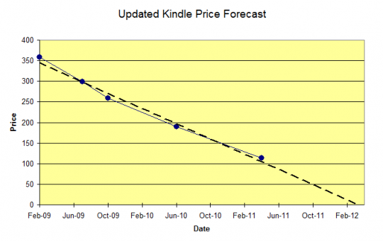 It is interesting that the forecasted free Kindle date is slipping. (Forecasted to be free after June 2011, then forecasted for after November 2011.)