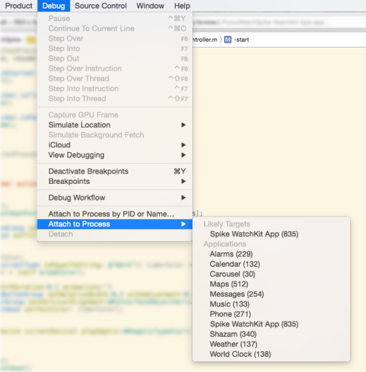 3. Select Debug > Attach to Process > (click on your watch app name)