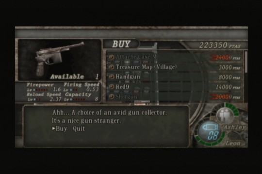 In Resident Evil 4, you can talk to an ever-present merchant to buy/upgrade weapons: