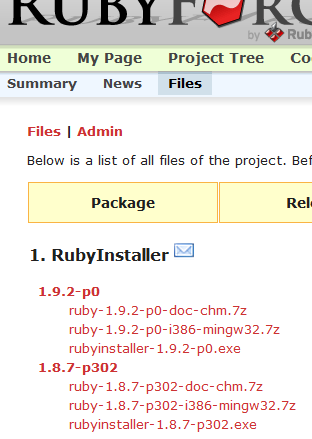 I downloaded the .exe file for version 1.8.7-p302.