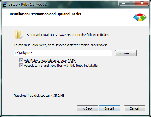 Extract the .zip file and place the the folder “rubygems-1.3.7”  in your Ruby directory. For me, the Ruby directory would be C:/Ruby187/